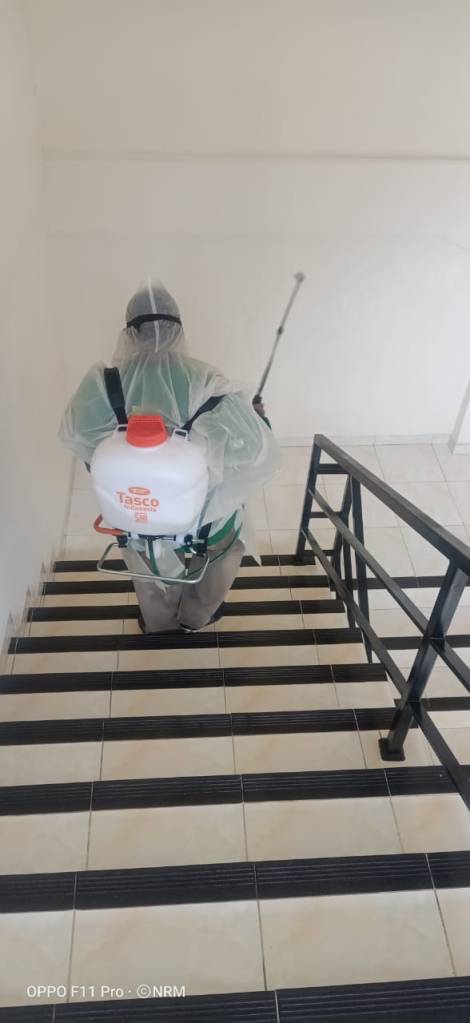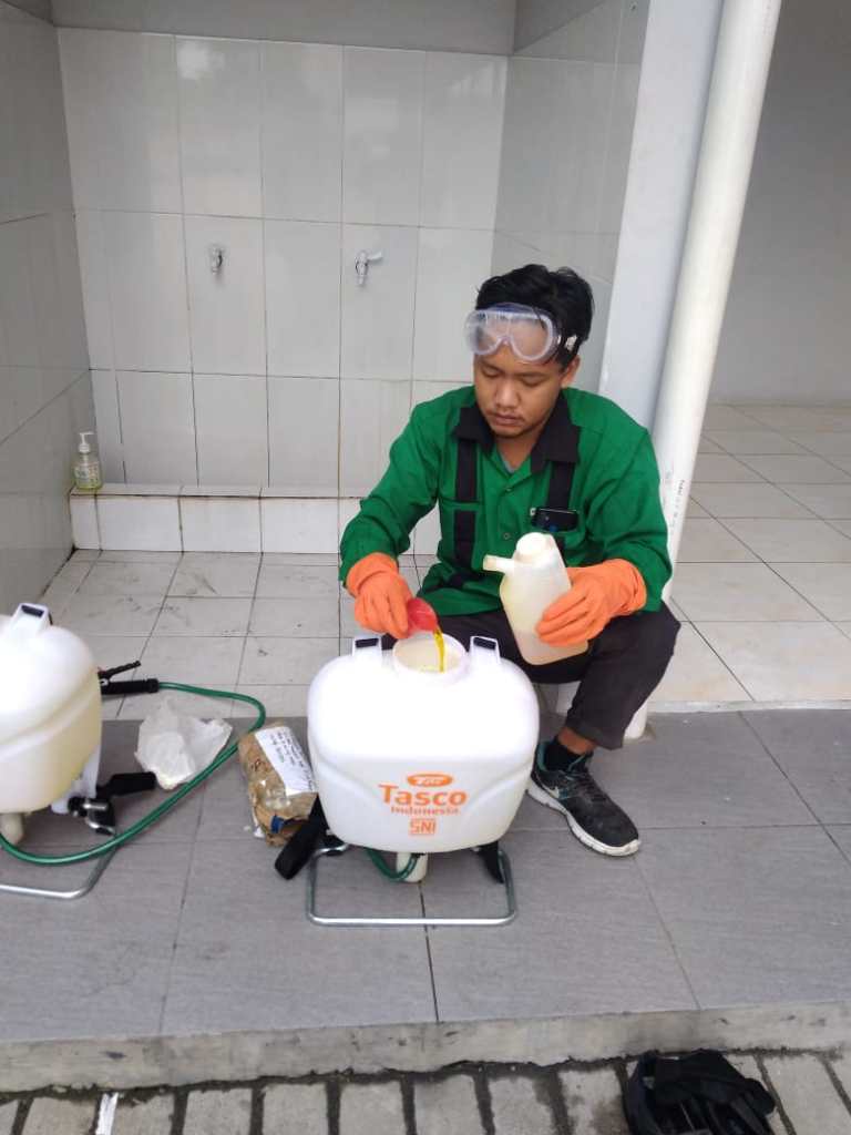 Penyemprotan pestisida juga dilakukan di bagian luar rumah, seperti di sudut-sudut tembok dan bangunan